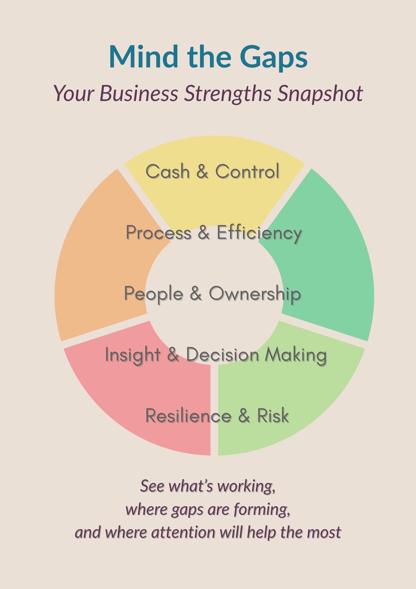 This assessment looks at how your business actually runs day-to-day across five key areas.